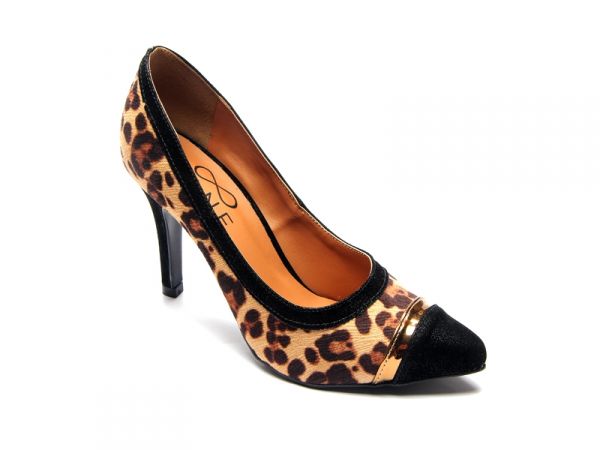 Sapato Scarpin construido numa linda combinacao fashion. Uma linda estampa animal print, com detalhe em specchio bronze e uma ponteira em nobuck preto. Salto numa excelente altura com solado em neolight na cor preta. O conjunto salto e solado proporcionam beleza, elegancia e conforto ao caminhar.